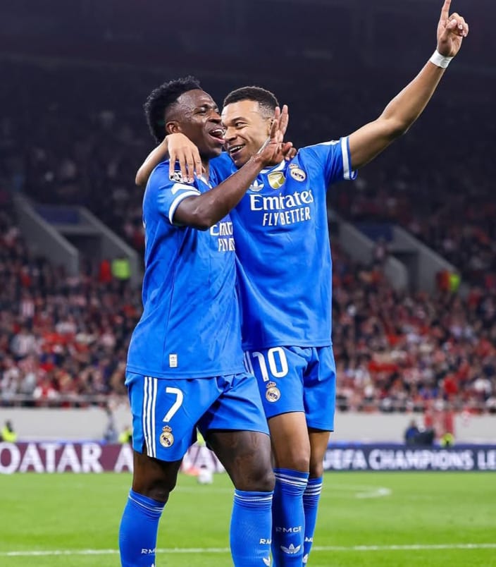 Partido de goles entre Olimpiacos y Real Madrid en la Champions League. El Real Madrid sigue con paso firme en la Champions gracias a la magia de sus máximas estrellas: Vinícius Júnior y Kylian Mbappé.