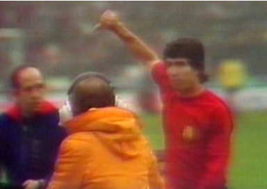 Cinco minutos después del gol Kubala mueve el banquillo y decreta la salida del campo de Juanito por el vasco Dani. El malagueño es abucheado y en un gesto hacia la grada baja el pulgar mientras Ángel Mur, que fuera masajista del F.C. Barcelona, le da una toalla y le baja el brazo. Camino al banquillo y en medio de la pista de atletismo que separa las gradas del terreno de juego, Juanito es alcanzado por una botella que se hace añicos sobre su cabeza.
